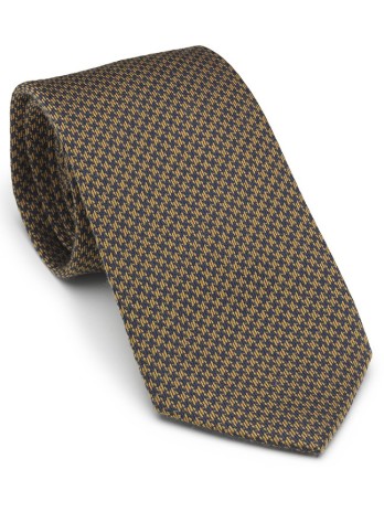 Cette cravate Laksen est une cravate à motif pied de poule (bleu marin et jaune). Ses matières sont 80% laine et 20% soie.